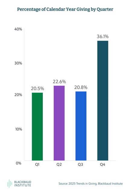 Even in a year where economic growth cooled in the fourth quarter, charitable giving didn't flinch. A staggering 36.1% of all annual revenue arrived in Q4, with December alone accounting for 18% of the year's total giving.